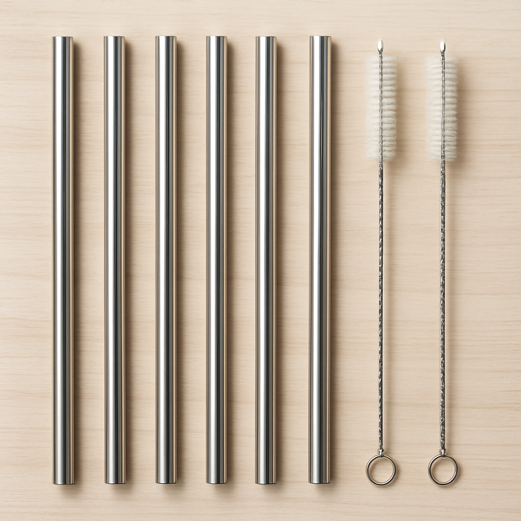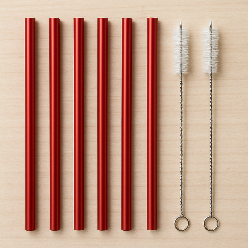 Lot de six (06) pailles Embavert droite métallique avec une brosse, flexible et offre un confort d’utilisation optimal grâce à une extrémité légèrement courbée. Idéale pour les enfants ou les personnes à mobilité réduite, elle permet de boire sans effort tout en restant eco-friendly.